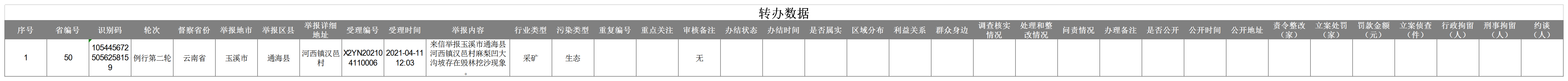 群众信访举报转办和边督边改公开情况一览表(第六批 通海县1件)