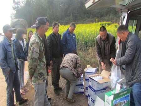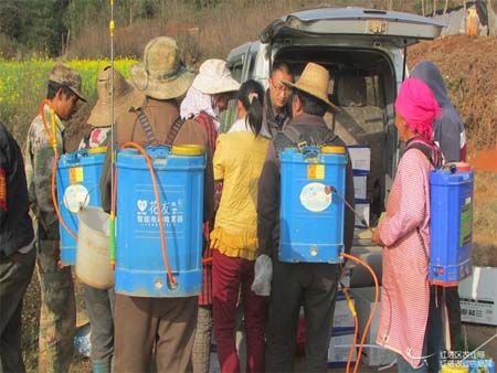 2017年2月21日,洛河乡农业中心组织法冲村五组村民对本组油菜新品种示范区和油菜高产栽培展示区进行了统防统治工作。
