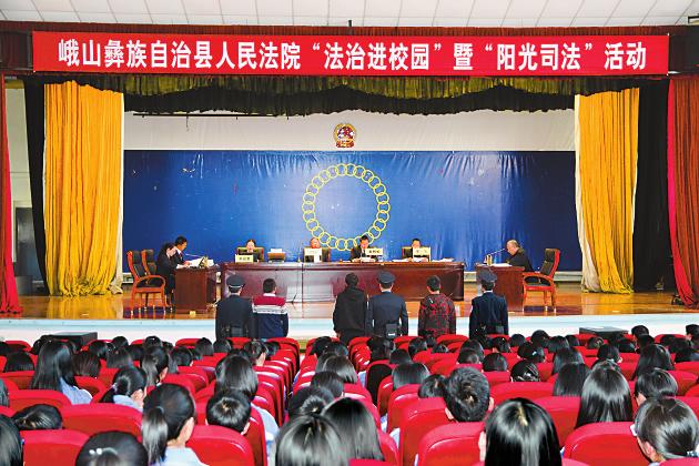 “带被告人龙某某到庭……”随着审判长敲响法槌,庭审正式开始。近日,峨山县人民法院“法治进校园”暨“阳光司法”活动走进玉溪民中,将真实庭审现场带进中学校园,为学校师生上了一堂生动的法律教育课。
