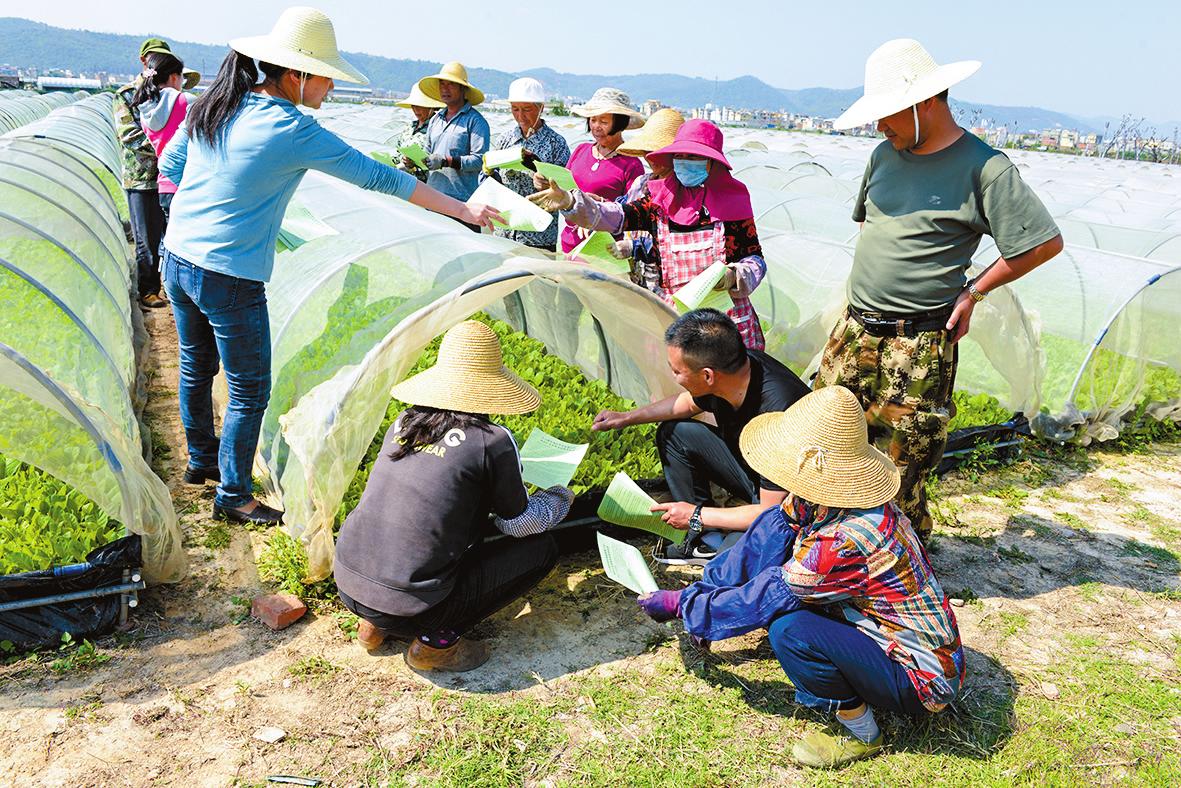 近日,通海县司法局法治宣传小组深入杨广镇杨广社区烤烟育苗基地宣传烤烟移栽相关政策法规,让普法宣传更贴近群众、更接地气。长期以来,通海县司法局充分发挥法治宣传的强项作用,积极推进法治宣传工作理念、方式、机制、载体创新,及时将国家新颁布的法律法规和县委、县政府的各项决策部署及时宣传到人民群众中,有力地推进了法治宣传工作向纵深发展。