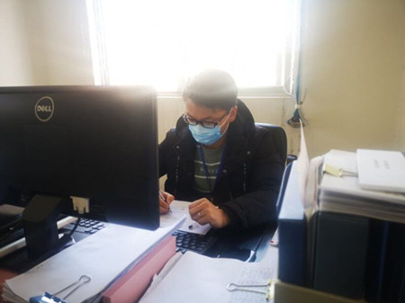 从大年三十至今,在“最危险的岗位上”连轴转对他们来说已成常态。虽然办公室仅有一层之隔,但他们工作中见面的机会并不多,偶尔见面时,常常只能道一句“保重”。