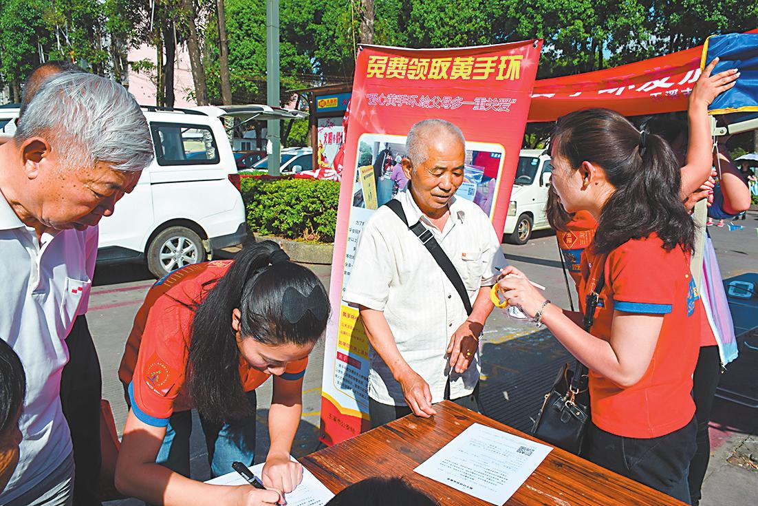 5月19日,玉溪红塔物业有限责任公司团总支和玉溪市义工联组织志愿者开展“真诚传递爱心、慢步健康人生、用心让爱回家”主题系列活动,免费向老人发放黄手环,并帮助他们填写信息表、免费测量血压,受到老人们的欢迎。据介绍,除发放黄手环外,志愿者们还陪市社会福利服务中心的23位老人漫步公园,耐心聆听他们的故事和心声。与玉溪卷烟厂退休老职工一起漫步聂耳文化广场,让老人们感受到了温暖。
