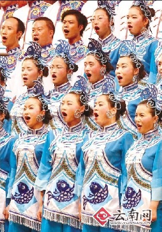 “爱你是挝乐,想你是挝乐……”峨山县合唱团在舞台上一出现,不禁让人眼前一亮,整齐的民族服装,有如天籁的彝族高音,无不让人感觉到浓郁的民族风情。峨山县合唱团在合唱周上获得好成绩也就是理所应当的事情了。玉溪音协副主席、峨山县歌舞团副团长曾晓伟是峨山县合唱团取得好成绩的功臣。据他介绍,峨山县合唱团组建起来才1个多月,队员都是县里机关单位上的职工,本身并没有大赛经验,“特别是一些基层来的队员,还有着浓浓的彝族口音,是花了好长时间才纠正过来的。”