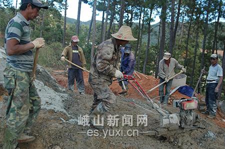 初冬时节,峨山县富良棚乡秋冬农田水利建设进入高潮。记者在塔冲村委会公路沿线看到,大部分挖好的小水窖均已进入混凝土浇筑阶段。