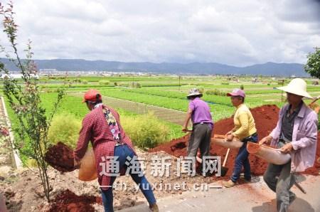 杞麓湖南岸湖堤生态修复项目包括在红旗河四门闸至杞麓湖调蓄水隧道工程进水口长10.7公里的湖堤上新植、补植垂丝海棠、桂花等常绿树木及游路铺设、部分道路硬化美化等工程。目前已植入垂丝海棠1000余株,整个项目预计6月底能够完工。