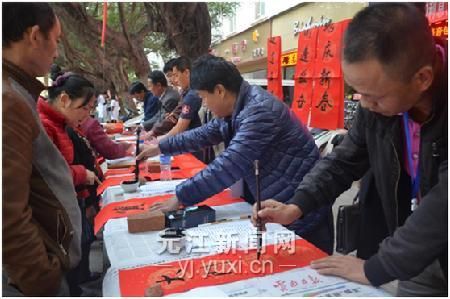 “花果飘香美哉元江,鸡年增色岂换人间”。新春佳节到来之际,为贯彻落实十八届六中全会、中央文艺工作座谈会、习近平总书记在中国文联十大上的重要讲话精神和省市文联关于春节期间开展文化惠民活动的重要精神。1月23日,元江县文联携手县书法协会15名本土书法家,开展迎新春书赠春联活动。
