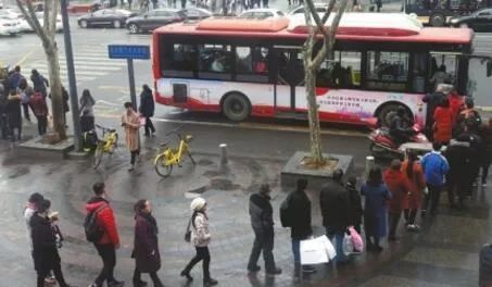 △公交车前自觉排队