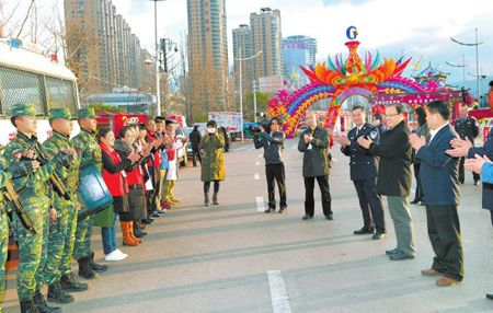 来到聂耳文化广场执勤点,张德华向执勤点的公安民警、武警战士、环卫工人、城管人员以及“哇家灯会”工作人员表示感谢和慰问。张德华勉励他们认真履行职责,做好节日维稳、治安防控、市容维护等工作,把灯会组织好、服务好,树立起玉溪的良好形象。