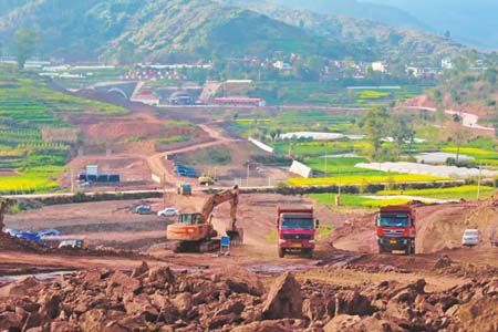 据中铁四局玉楚高速项目负责人介绍,玉楚高速田心试验段全长约3.5公里,工程包括8座分离式桥梁和1400米路基,工期为3年,工程造价达2.5亿元。由于项目征地拆迁工作得到甸中镇党委、政府和当地群众的大力支持,征地拆迁进度在玉楚高速全线所用时间最短,施工进度最快,现已完成9000万元的投资任务,有望在两年内提前完成工程建设任务。