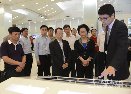 在华为公司的创新科技展厅,代表团成员认真听取介绍,了解华为的发展历程,参观体验了华为公司新开发的视频会议系统以及该公司的最新产品演示,观摩网络通信相关的新技术、新产品,并与华为技术负责人进行了沟通和交流。