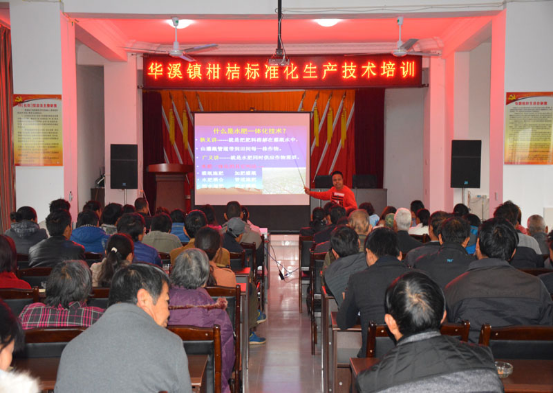 2月至5月,陆续举办柑桔种植技术培训。在华溪镇柑桔种植区域的华溪社区、甫甸社区、小寨村委会、黑牛白村委会四个村(居)委会开展华溪镇美丽乡村建设、低碳技术集成应用及柑桔标准化生产技术培训,培训会上县柑桔办董德祥老师利用通俗易懂的语言全面生动地为农户讲解了柑桔种植各个阶段的技术要点和病虫害分辨及防治,培训会后,还带领参训的农户进入田间,针对当前柑桔生长过程出现的问题提出防治、改进办法,此次培训共有柑桔种植户500余人参加,发放科普宣传读物500余份。为进一步提高桔农的种植技术与管理水平,华溪镇于5月18日邀请国家现代农业柑橘产业技术体系岗位科学家、中国柑橘科学研究所副所长彭良志到甫甸社区和华溪社区开展柑桔种植技术培训,培训结束后,参与培训的农户纷纷表示此次的培训及时有效,解决了我们在今后柑桔生产过程中出现的不足之处,并希望以后类似的培训会能持续开展。