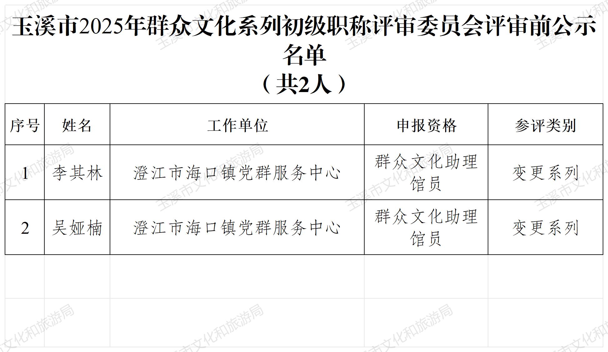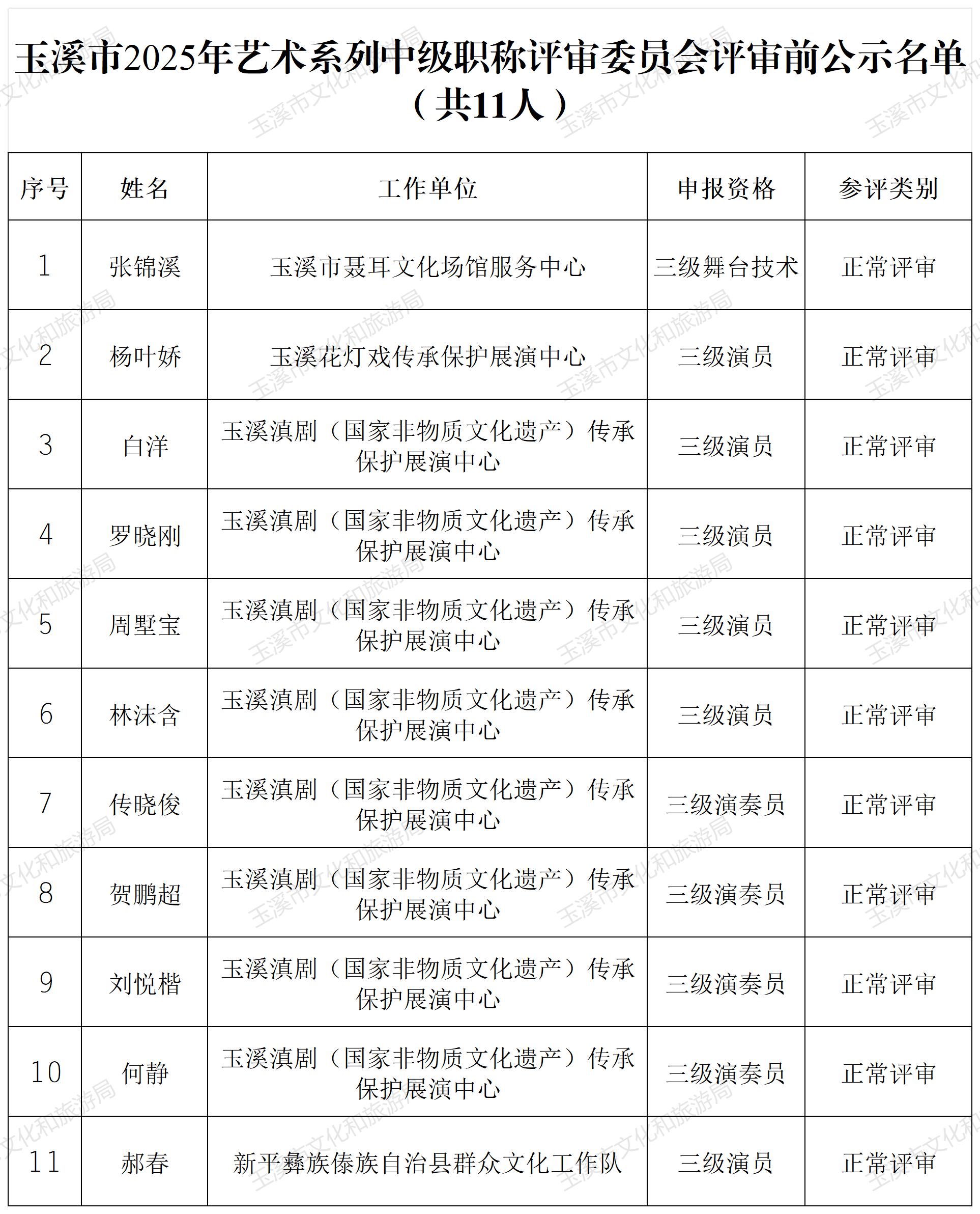附件:1.玉溪市2025年群众文化系列初级职称评审委员会评审前公示名单